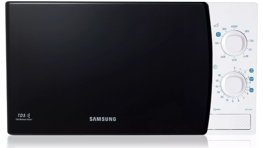 Jeśli szukasz małej, aczkolwiek funkcjonalnej mikrofalówki, to dobrym rozwiązaniem może się okazać Samsung GE711K. Opinie na temat tego urządzenia są bardzo pozytywne. Do jednej z głównych zalet należy przede wszystkim jej gabaryt. Mikrofala ta ma pojemność 20l, jej wymiary wynoszą: 27,5 x 48,5 x 36,1 cm. Biało-czarny design z niebieskimi elementami przy pokrętłach sprawia, że będzie to doskonałe rozwiązanie dla każdej kuchni. Zarówno pod względem wizualnym, jak i gabarytowym. Moc działania to 750 W, a system sterowania jest mechaniczny. Mikrofala ta ma 7 różnych poziomów mocy, co sprawia, że możliwe będzie dopasowanie wszelkich parametrów do indywidualnych potrzeb.